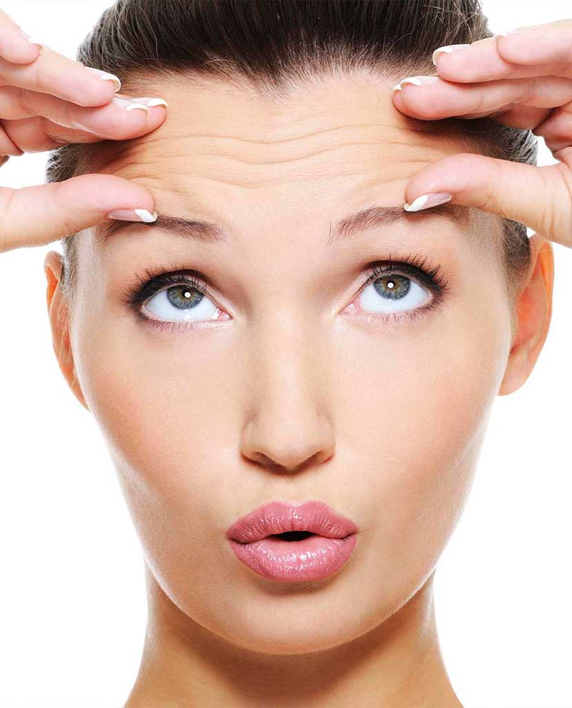 Over time, lines can become imprinted in the skin due to repeated movement of underlying muscles. Commonly, such lines occur between the eyebrows (the so-called 11’s), across the forehead, or around the eyes (crow’s feet) or mouth (vertical lip lines). Try making a variety of facial expressions at yourself in the mirror (best done in private to avoid stares), and you will see what we are talking about!